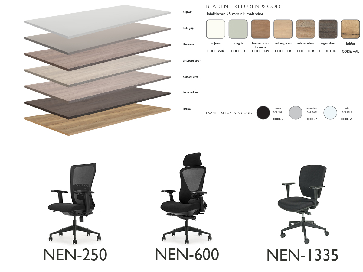 - Bureaustoel serie 250 NEN, serie 600 NEN of serie 1335 NEN